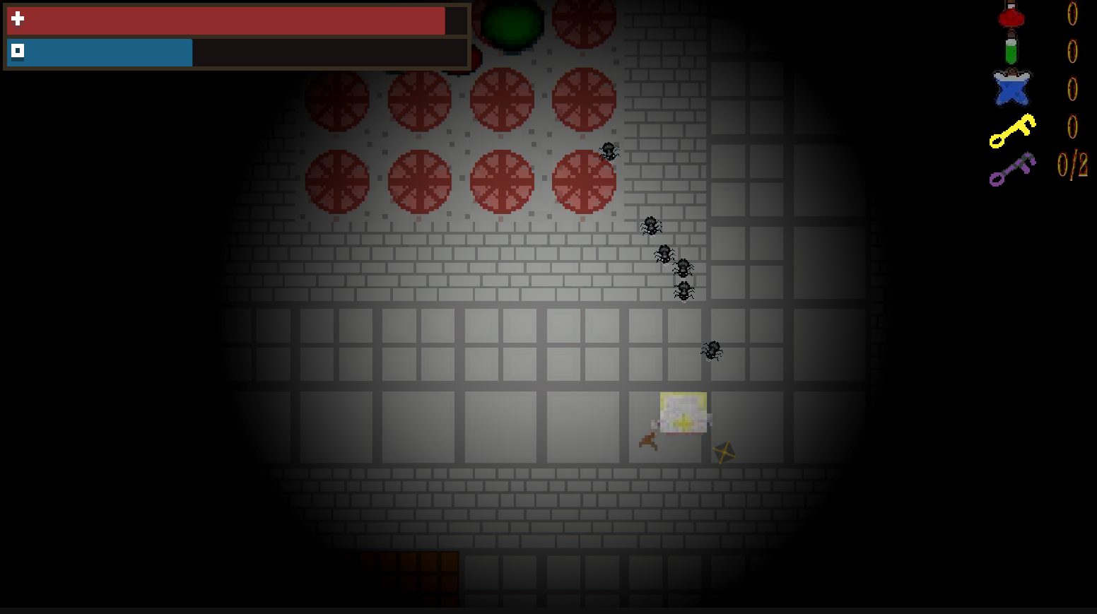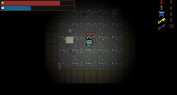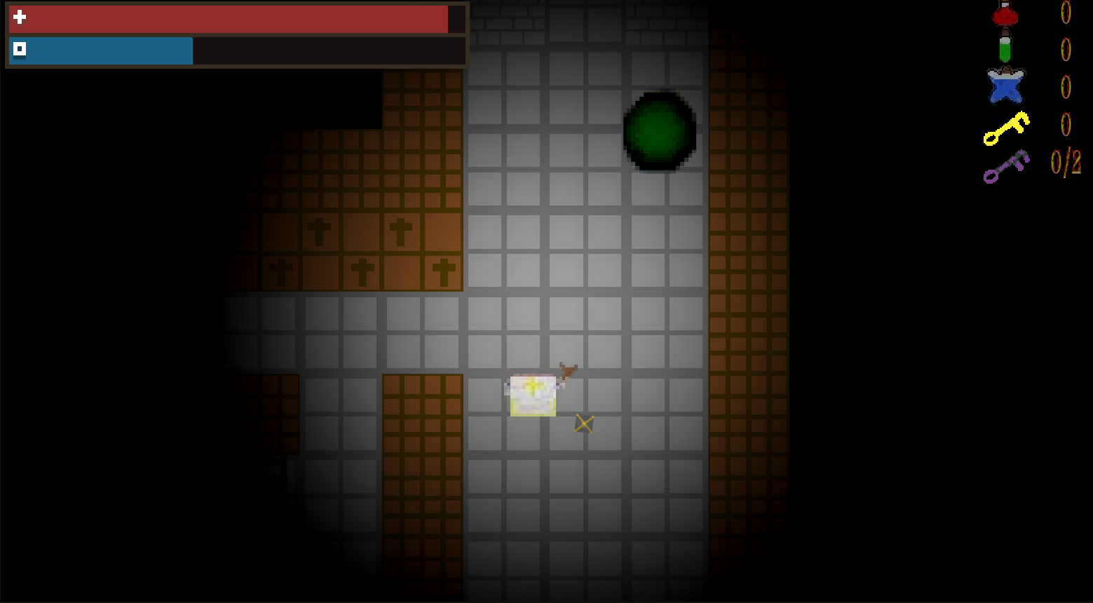 Game about a bishop who is carrying Pandora's Box to the crypt of his cathedral. However, to pick up or use any items along the way, he must open the box...